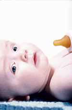 Eltern und Kind unterstützen. Das Baby lernt daneben, sich zu entspannen